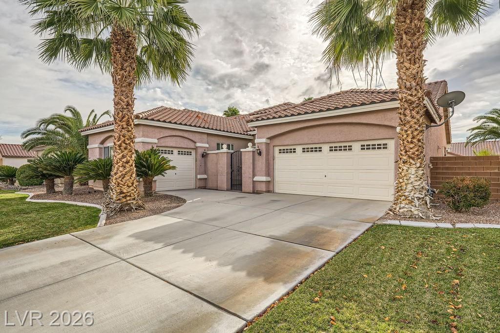 Prepare to be Amazed! Cool like the other side of the pillow contemporary home in a gated subdivision in desirable Skye Canyon. Community pool, workout facilities, parks and unrivaled outdoor living here. and Cul-de-sac location too! Open and spacious living area down includes dining, living, and island kitchen plus den. Love the modern lighting and even choose your color! Inside wall cord system ready for your TV too! Extensive tile floors through out the first floor. Front den could be office, workout room, hobby place. Island kitchen has stainless appliances too. Upstairs you'll find all bedrooms. The primary has remote controlled ceiling fan and sunny windows. Primary bath offers double sink vanity with lots of counter space, walk-in closet, and a large shower. Secondary bedrooms have plush carpet and overhead lighting. Laundry is up too - both washer & dryer are included.