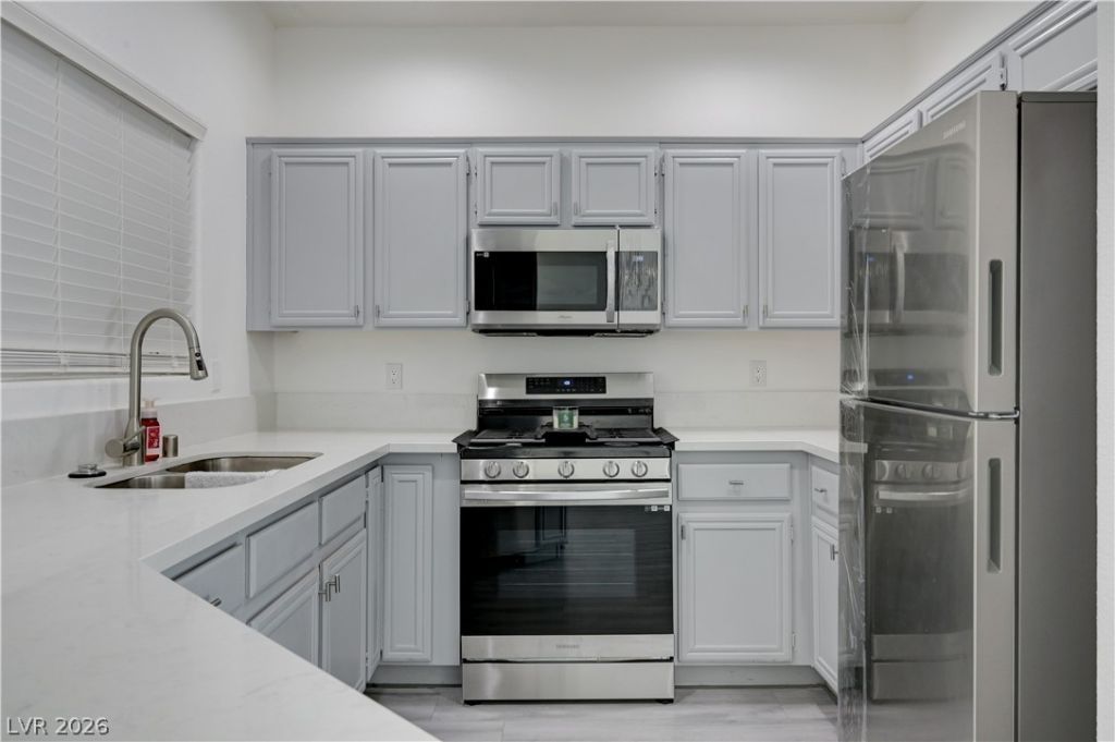 Beautifully renovated first-floor condo with 2 bedrooms and 2 updated bathrooms. The modern kitchen features quartz countertops and brand-new Samsung stainless steel appliances. Enjoy luxury vinyl plank flooring throughout?no carpet?and contemporary 5-inch baseboards. Both bathrooms offer spa-like finishes, including a walk-in shower with floor-to-ceiling tile in the primary suite and an upgraded tub/shower combo in the second bath. All appliances are included, even washer and dryer. Ceiling fans with remotes and window blinds add comfort and convenience. Relax on the covered, enclosed patio. The gated community offers a pool and well-maintained grounds. Conveniently located near shopping, dining, schools, and entertainment. Move-in ready and a must-see!