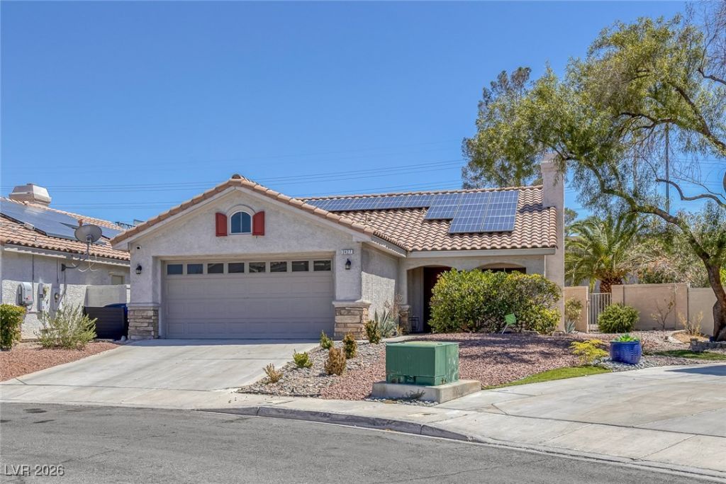 Beautiful single-story home in the desirable Pebble Creek community of Green Valley! This 3 bed, 2 bath home offers a well-designed space with a hot tub, energy-saving solar panels, and great curb appeal. Located near top-rated schools, parks, shopping, and dining. Enjoy a quiet neighborhood feel with a low monthly HOA and a true sense of community. Don't miss this opportunity in a prime Henderson location!