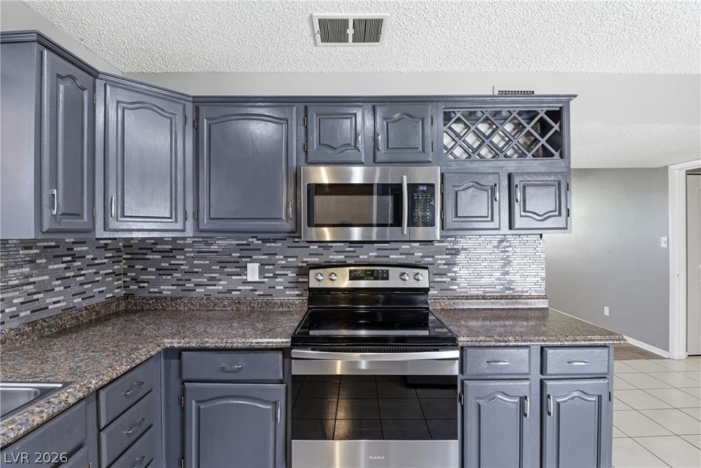 Paid-off solar, a newer roof, & upgraded windows set the stage for amazing energy-efficient living?all with the added benefit of no HOA. Welcome to this beautifully updated single-story gem. The home features tile flooring throughout?completely carpet-free?& an open, flowing floor. The remodeled kitchen is thoughtfully appointed with stainless steel appliances & generous countertop space. A stacked-stone wood fireplace anchors the living area, adding warmth to the home. The primary suite offers a serene retreat, complete with a fully remodeled bathroom. Step outside to the low-maintenance backyard designed for entertaining. Enjoy artificial turf, a covered patio for year-round gatherings, & a convenient storage shed. Ideally located just minutes from major freeways shopping, & the world-class dining, entertainment of the Famous Las Vegas Strip.