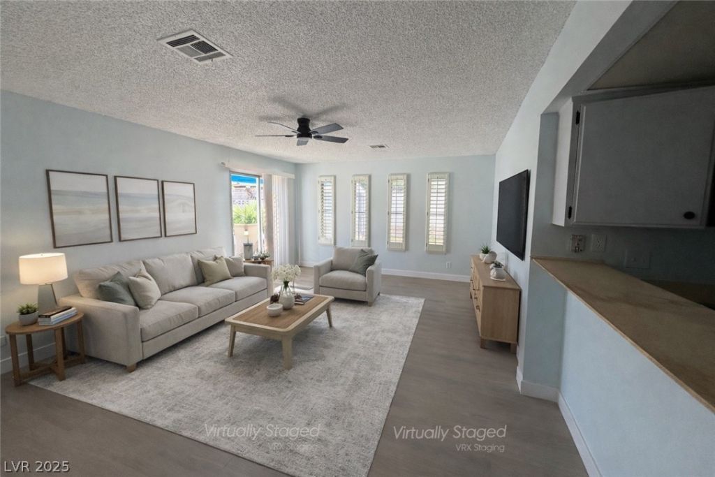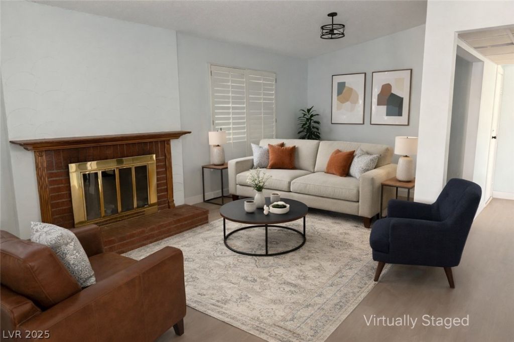 Attractive single-story, 3 bedroom / 2 bath home located in central Las Vegas on a desirable oversized corner lot with no HOA. Enjoy an open, well-designed layout featuring a formal living and dining area with vaulted ceilings and a warm fireplace, plus a separate comfortable family room perfect for everyday living. The kitchen includes a breakfast bar and practical workspace. Interior highlights include carpet and linoleum flooring, plantation shutters, and ceiling fans throughout. The generous primary bedroom features its own retreat space, ideal for a home office, den, or reading nook. Outside, the home offers easy-care desert landscaping, a covered patio, and a storage shed. A 2-car garage adds to the convenience. A wonderful value in a central location?homes like this don't come around often!