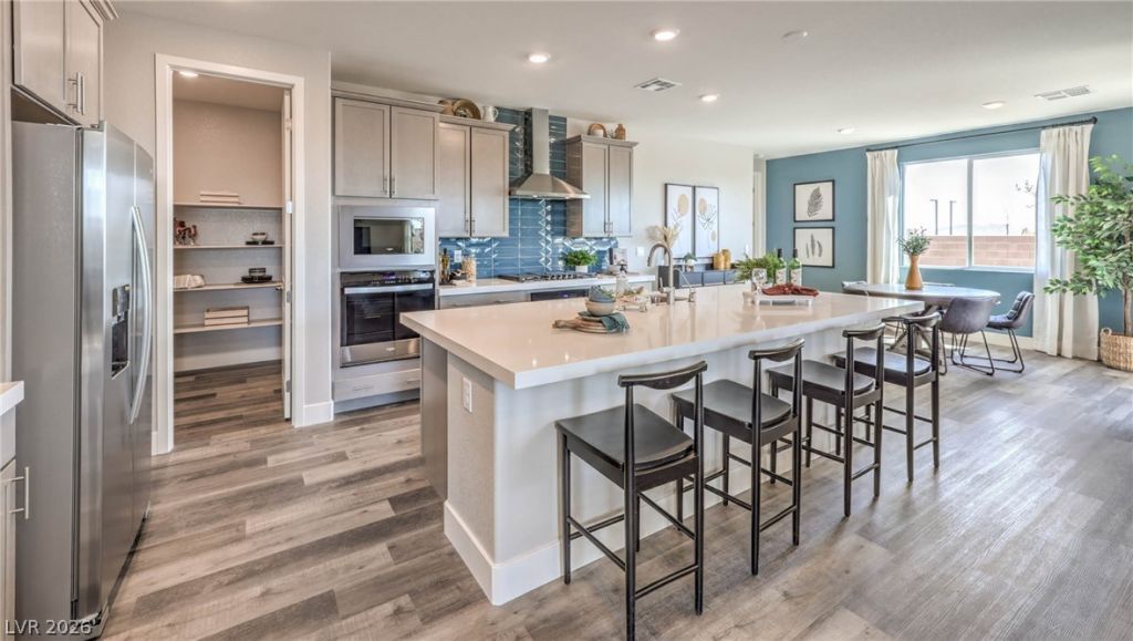 BRAND NEW 3 CAR GARAGE SINGLE STORY WITH INCLUDED MULTI GEN SUITE, backed by Fortune 500 company. Stainless steel Whirlpool dishwasher, range and microwave, LVP flooring, Granite Kitchen/Bath countertops, Smart Home Features, Tankless Water Heater, Included Patio cover! Gated community located in The Villages at Tule Springs Masterplan. The Heartland Manor Sales Office is located at 7670 Amanda Springs Ln, North Las Vegas, NV 89084. Office hours are 10am-5pm daily. Can vary due to events and holidays. Photos are of the 2754 PLAN MODEL HOME - ARTISTIC RENDERING * material/features/colors can vary and are subject to change.* Exterior features and colors will vary. Elevation is representational only; subject to change.