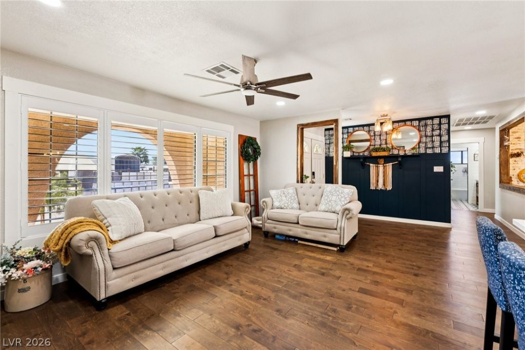 Stunning, Fully Remodeled home in one of Boulder City's most sought-after Golf Course Neighborhoods with walking access to the Course! This 5 Bedroom, 3 Bath Home offers a bright, open layout ideal for entertaining, plus a 3-Car Garage and rare covered RV/Boat parking area. The designer Kitchen features quartz countertops, engineered wood flooring, a large island, and a warm farmhouse-inspired feel, opening seamlessly to the Dining and Living areas with direct Backyard and Pool access?perfect for indoor/outdoor living. The spacious Primary Suite serves as a relaxing retreat, while 2 additional Bedrooms on the main level enhance the Highly Functional floor plan. A fabulous Basement layout adds incredible flexibility with a large Family Room featuring a charming wood-burning fireplace, Flex Room perfect for a Theater, Gym, or Relaxing Den, 2 Bedrooms, plus walk-in Storage. Generously sized Secondary Bedrooms, Private Office, indoor Laundry w/ sink & no HOA complete this Exceptional Home!
